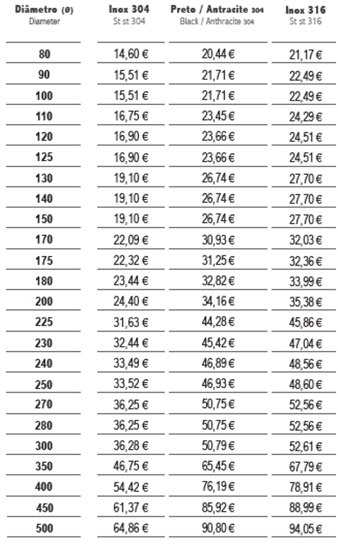 Chaminé de Inox Parede Simples D.80 em Inox 304